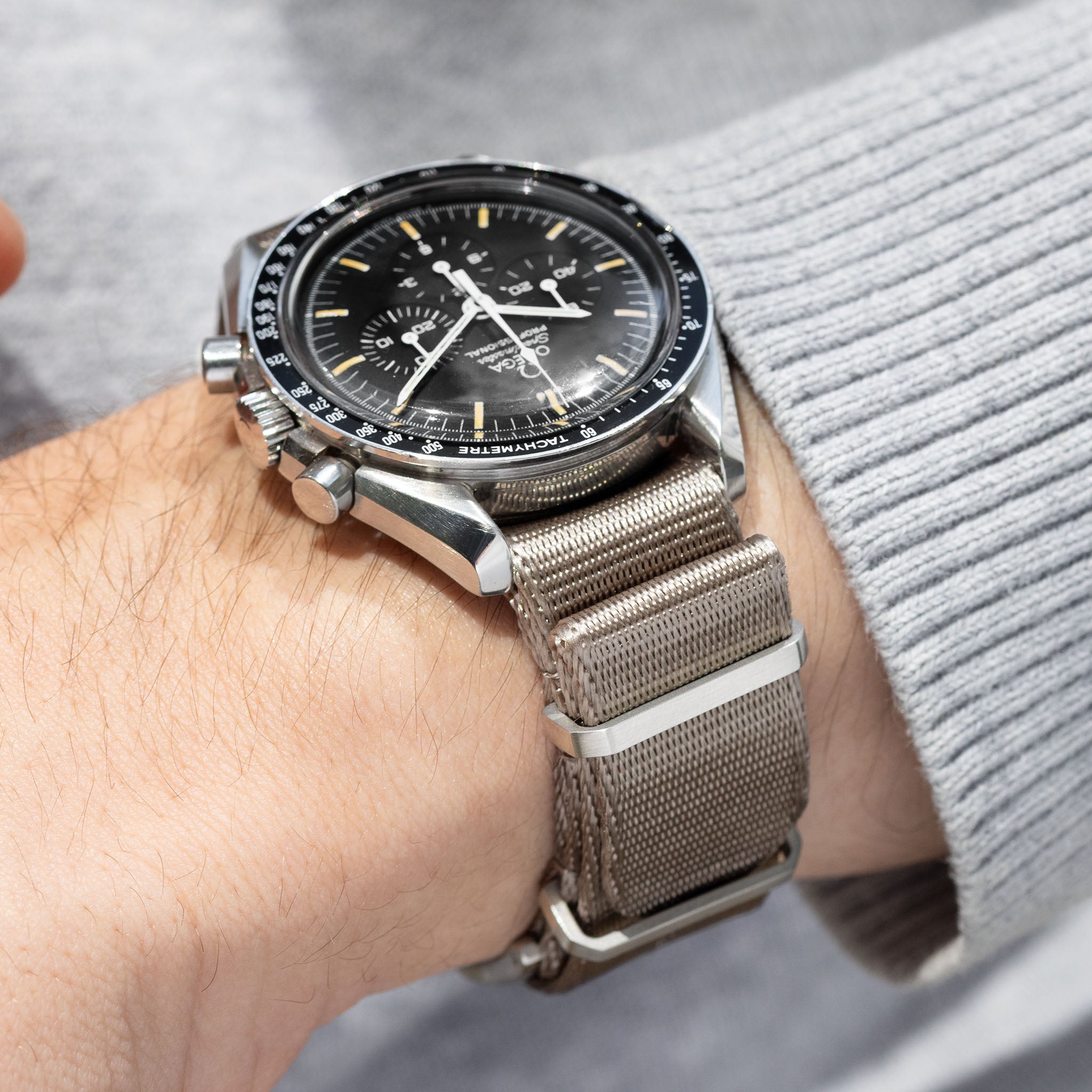 Strap for Omega Speedmaster Professional - Nylon Single Pass Taupe Grey